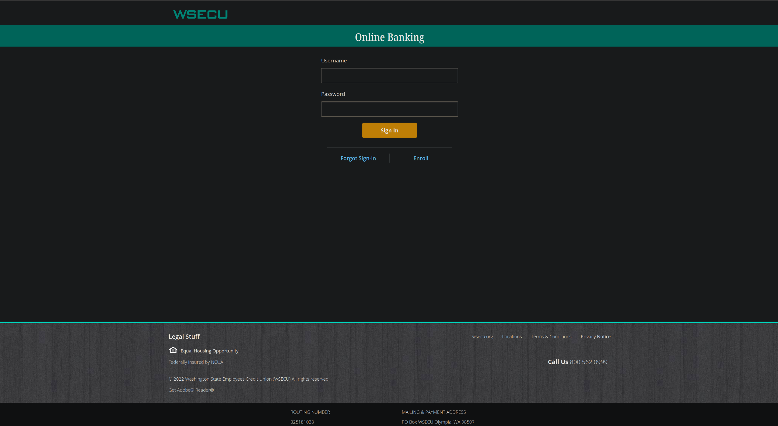 This kind of domain is very smelly. It reeks of phishing keywords and was designed to look mostly OK on mobile where the URL is truncated to fit the screen width. Looking closer at the web folder, notice that WSECU is even misspelled. Very smelly. But, remember that if you are coming at it on a mobile phone (it was an SMS spread attack intending for you to click it), you may not see the suspicious details. The site itself looks like a good login page as per usual.